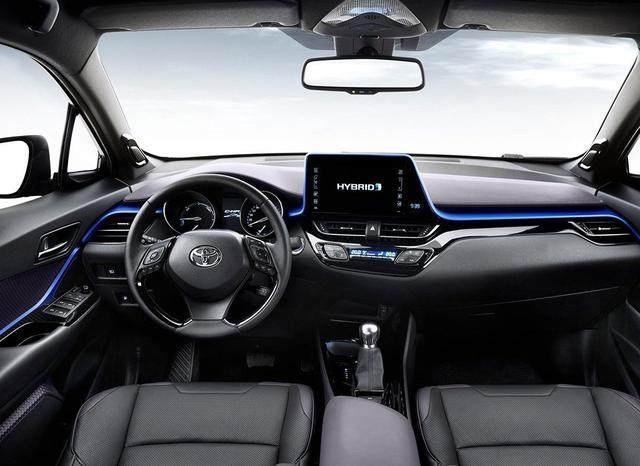 内饰设计上,丰田C-HR强调驾驶员的感受,中控台向驾驶员一侧倾斜。整个中控台的设计简洁而富有科技感。新车提供有三种内饰配色,包括深灰色、黑+蓝以及黑+棕。同时,新车的座椅采用Nappa真皮材质包裹,中控台配有钢琴烤漆面板和金属饰条。
