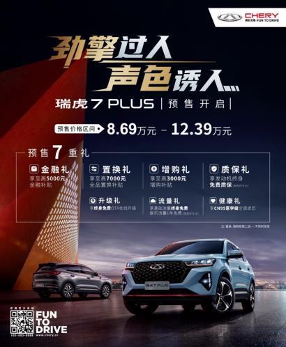 9月16日,奇瑞汽车为新一代年轻消费者打造的瑞虎7 PLUS正式开启预售,推出1.5T-9CVT、1.6T-7DCT鲲鹏动力共7款车型,预售价格区间为8.69万元-12.39万元,用户在预售期间下订瑞虎7 PLUS即刻先享“预售7重礼”。